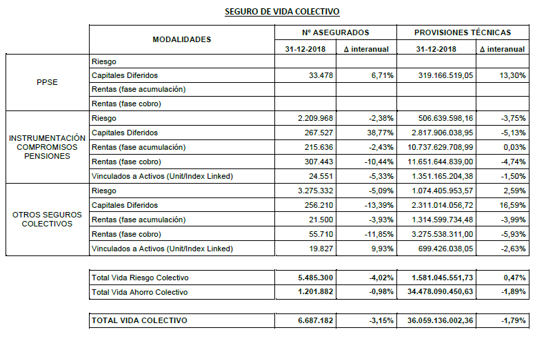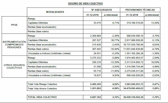 El seguro de Vida Colectivo cae un 3% en asegurados y casi un 2% en provisiones