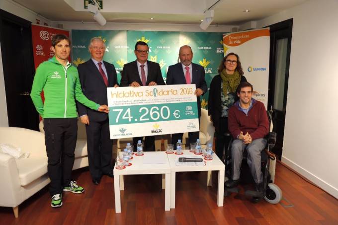El 29 de noviembre tuvo lugar, en la sede de Fundación ONCE, el acto de entrega de la donación conseguida gracias a la ‘Iniciativa Solidaria 2016’, lanzada por el Grupo Caja Rural, Seguros RGA, y el equipo ciclista que ambas entidades patrocinan. David Arroyo, ciclista del equipo; Pablo González de Castejón, director general de Seguros RGA; y Ernesto Moronta, presidente de la Asociación Española de Cajas Rurales, entregaron un cheque simbólico por valor de 74.260 euros. El cheque lo recogió José Luis Martínez, director general de Fundación ONCE.