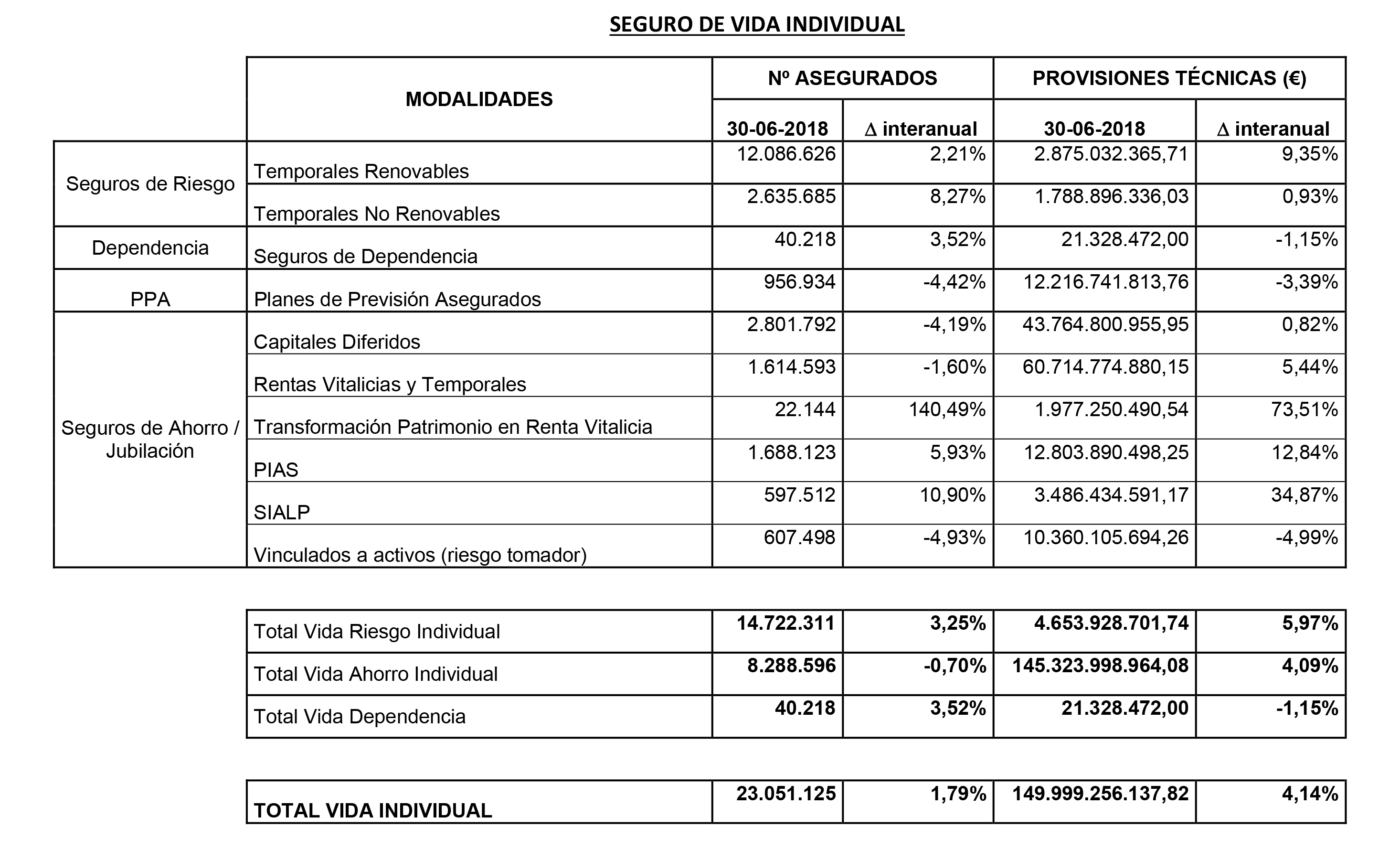 En términos generales el seguro de Vida ha mejorado un 2,55% respecto a junio del pasado año como ya contábamos ayer. De todas formas, si pormenorizamos los datos el seguro de Vida Colectivo ofrece peores datos que los de Vida Individual con una caída del 3,5% en provisiones técnicas frente al crecimiento de los seguros de un 4,1%.