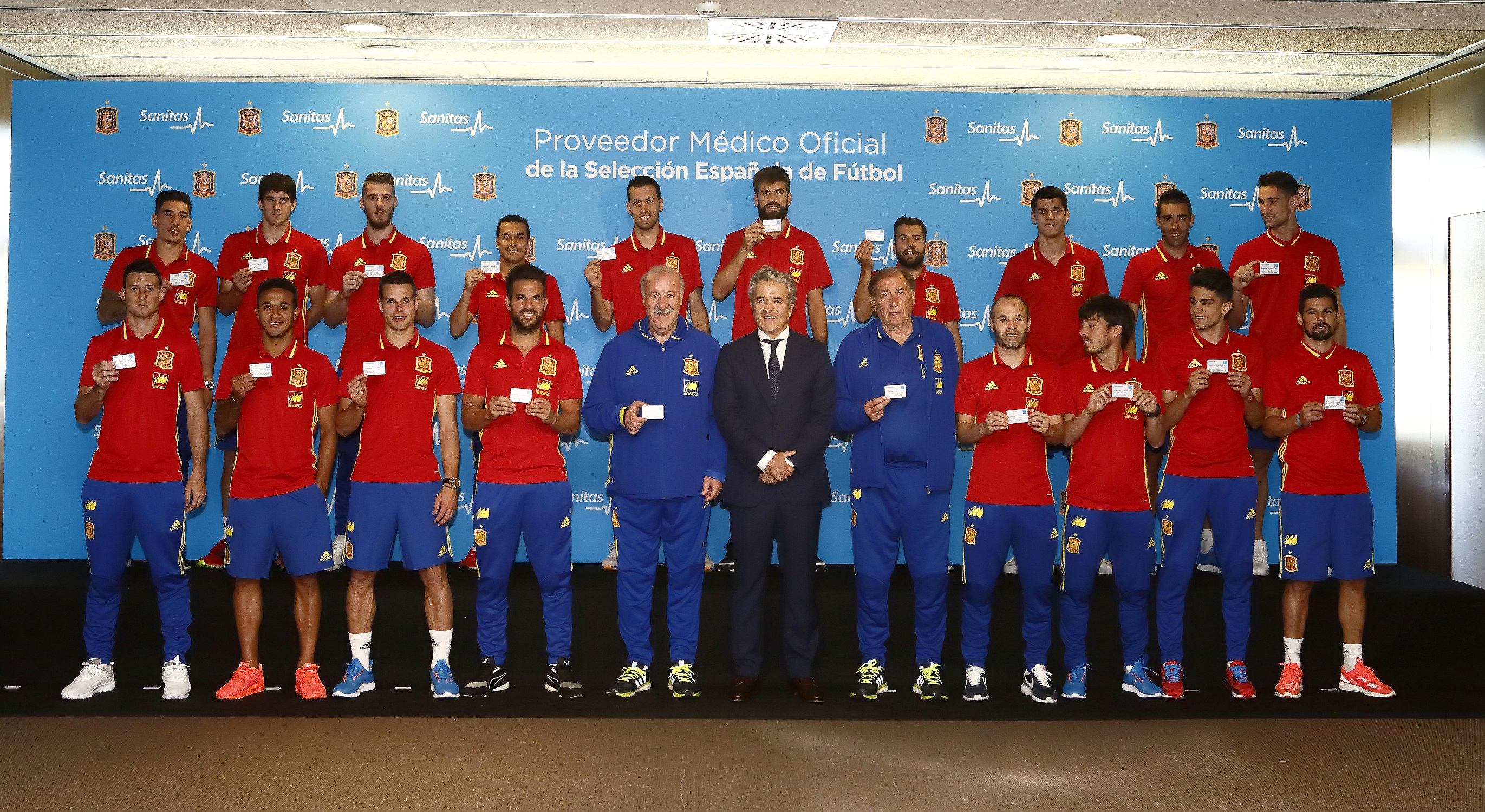 El acto ha tenido lugar en la Ciudad del Fútbol de Las Rozas dos días antes de que la Selección parta hacia Francia. Sanitas pone a disposición de La Roja su equipo médico y avances tecnológicos y asistenciales.