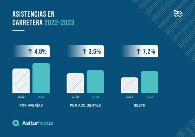 El Observatorio de Siniestros AsiturFocus ha analizado la actividad de los servicios de asistencia en carretera en 2023 y, según sus estadísticas, revela que el año se ha cerrado con un incremento del 5% respecto al anterior. Precisa que las asistencias derivadas de averías han crecido un 4,8% y las que tuvieron lugar por un accidente lo hicieron un 3,6%. El resto de las asistencias crecieron un 7,2% y aquí se engloban asistencias por fallo en neumáticos, falta de combustible o pérdida de llaves, entre otras causas.