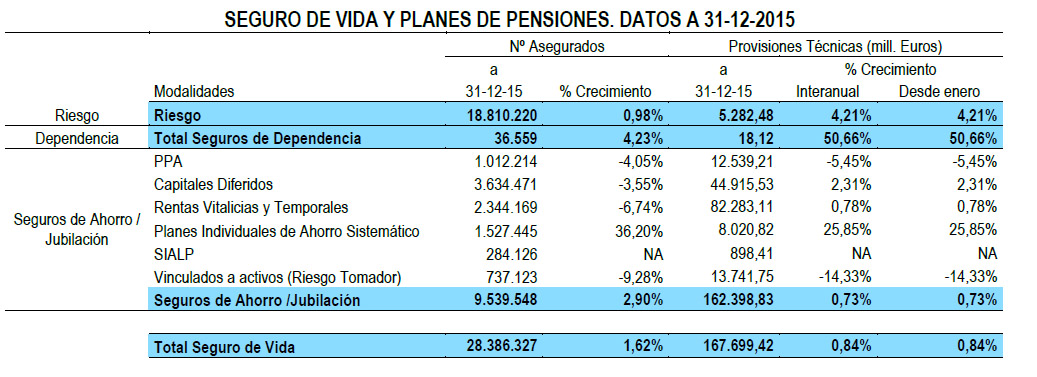 Los seguros individuales de ahorro a largo plazo (Sialp) han cosechado 898 millones de euros en 2015, su primer año de vida. Estos productos nacieron de la mano de la reforma fiscal de 2014 y al cierre del ejercicio cuentan con 284.126 personas. Por su parte, los PIAS alcanzaron 8.020 millones de ahorro gestionado y registran un crecimiento del 25,85% en un año.