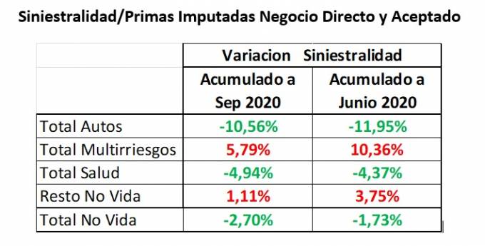 Por su parte, Multirriesgos y Resto No Vida se acercan a los datos de siniestralidad de 2019, con lo que el conjunto de ramos No Vida se benefician de forma muy importante, con una mejora de la siniestralidad por los efectos del Covid 19, según datos proporcionados por Global Actuarial.