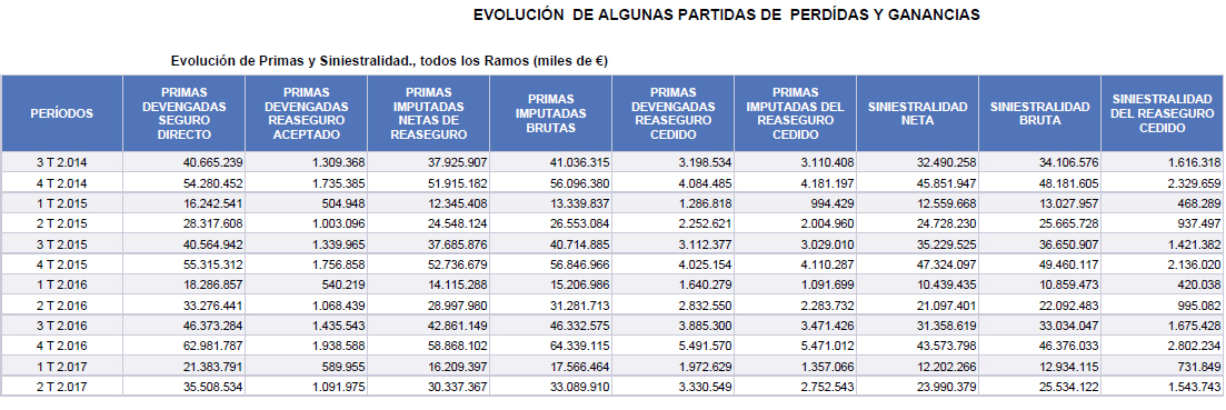 En Vida, el resultado de la cuenta técnica como porcentaje de las primas imputadas se ha situado en el 7,51% (8,85% en junio de 2016), mientras que el ratio combinado neto ha pasado del 114,7% al 118,12%. En No Vida, el resultado ha sido del 8,6% (9,76% en 2016), mientras que el ratio combinado se colocó en el 94,64%, 93,62% hace un año.