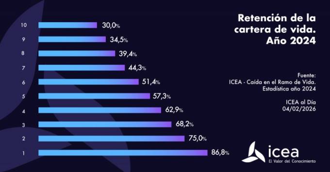 Solo el 30% de las pólizas de Vida se mantienen pasados 10 años desde su contratación, según datos analizados por ICEA en su estudio 'Caída en el Ramo de Vida. Estadística año 2024'.