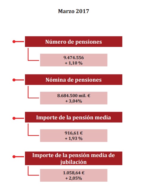 La nómina de pensiones contributivas de marzo alcanza 8.684 millones de euros, lo que supone un récord histórico, con un incremento interanual del 3,04%.