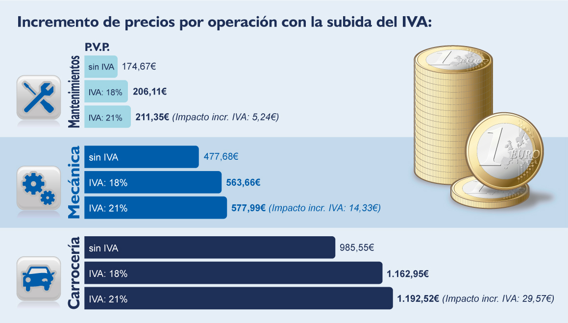 Por otro lado, el presidente de Confederación Española de Talleres de Reparación de Automóviles y Afines (Cetraa), Manuel García, alertó de que la subida del IVA va a fomentar la economía sumergida: “Si la factura de una reparación en un taller es mayor, los clientes van a tener la tentación de acudir a los talleres ilegales”.