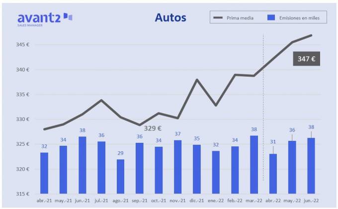 La prima media de Autos escaló durante el segundo trimestre de 2022 hasta los 347 euros –un 4,7% interanual-, el precio más alto en el último año y medio, en un contexto de inflación económica que hace prever un progresivo aumento de las primas medias en los próximos meses, según datos del Barómetro trimestral por Versus Data Insurance.