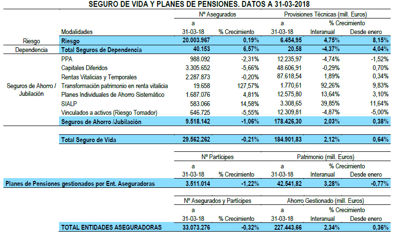 También destaca la pujanza de los Sialp. Estas pólizas, popularmente conocidas como Planes de Ahorro 5, movían al acabar el trimestre 3.309 millones y crecen un 39,85% con carácter interanual.