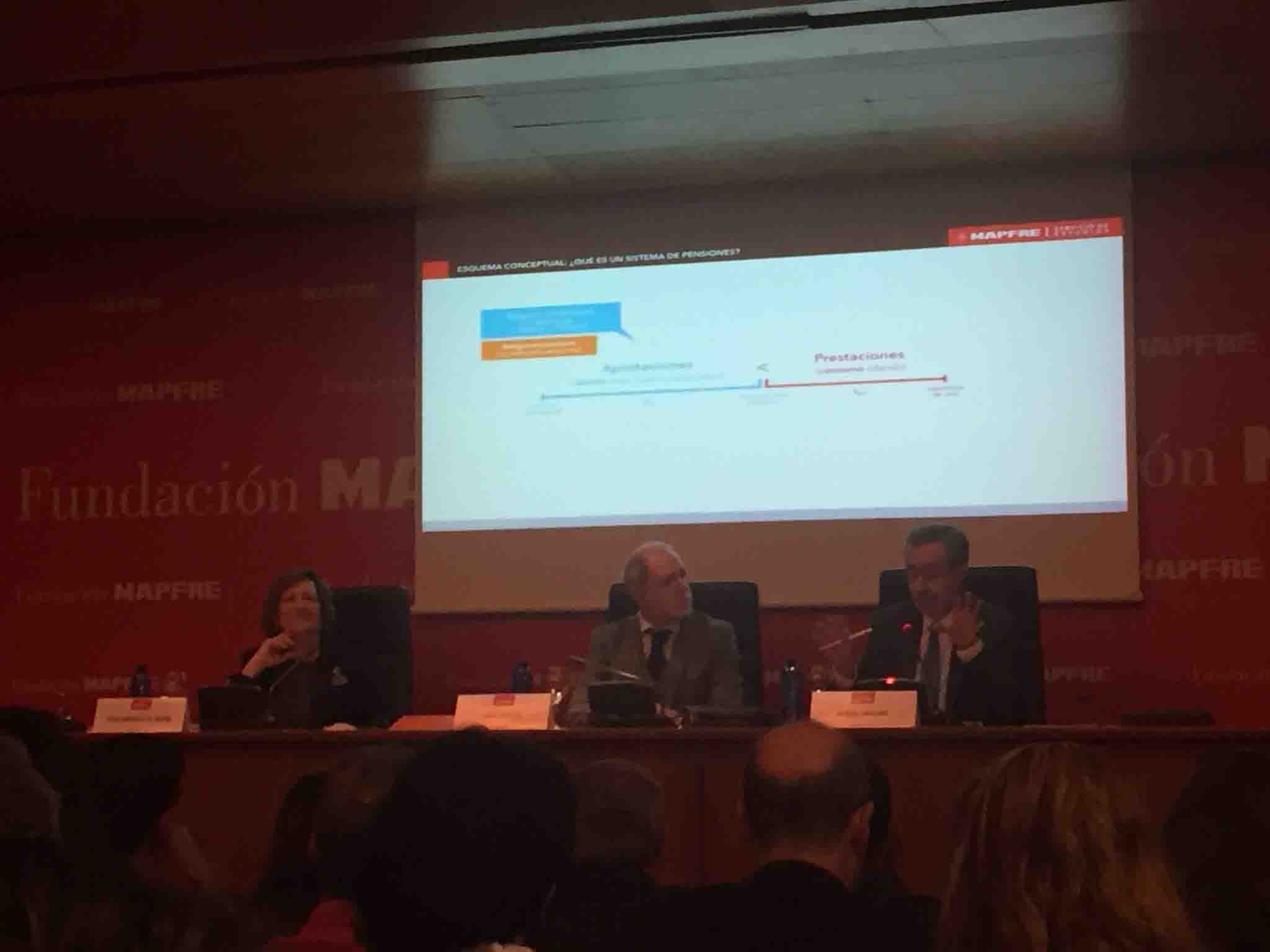 En una jornada sobre Pensiones organizada por Mapfre ha ejemplificado cómo hay que hacerlo, especialmente ante el hecho de que todos los expertos esperan una reducción en la tasa de sustitución en las próximas décadas. En primer lugar ha indicado que hay que conseguir "que nuestro sistema de pensiones actual sea un sistema sostenible y predecible". Sostenible significa, ha continuado, que avance hacia la equivalencia actuarial y que tienda a generar flujos de cotizaciones y prestaciones equivalentes. En este sentido declaró que el mejor esquema es el de cuentas nocionales o virtuales: "Lo importante es que el sistema propende al equilibrio dinámico entre lo que entra y lo que sale".