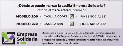 Unespa y el Comité Español de Representante de Personas con Discapacidad (CERMI) piden a las aseguradoras que destinen el 0,7% de su tributación en el impuesto de Sociedades a fines sociales. Para ello solo tienen que marcar Casilla Empresa Solidaria en sus declaraciones - casilla 00073 en el modelo 200 o la casilla 069 en el modelo 220-.
