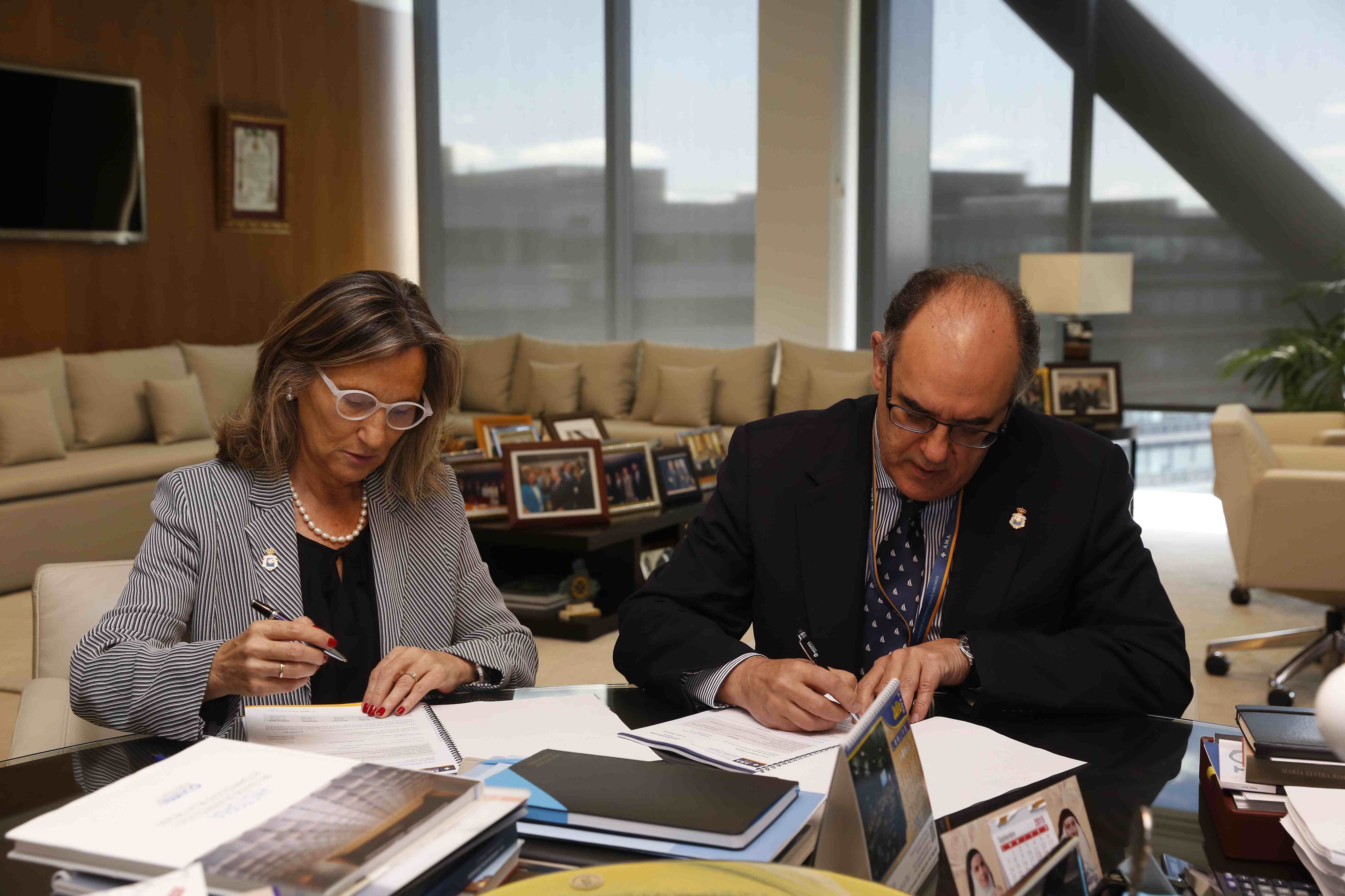 El Colegio de Médicos de La Rioja y el Colegio de Veterinarios de Salamanca contrataron con A.M.A., con efecto a 1 de julio de 2017 (Médicos La Rioja) y 1 de junio (Veterinarios Salamanca), una póliza colectiva de Decesos de la que se beneficiarán sus colegiados: unos 1.650 médicos y 450 veterinarios. Inmaculada Martínez, presidenta del colegio riojano; y Javier Román, presidente del colegio salmantino, fueron los encargados de sellar el acuerdo junto a Luis Campos, presidente de A.M.A., y Miguel Rodríguez, director general de A.M.A., respectivamente. La póliza de Decesos, actualizable por años naturales, asegura todas las coberturas propias de este tipo de riesgos, incluyendo también el traslado nacional del finado hasta el tanatorio y lugar del sepelio, entre otras garantías.