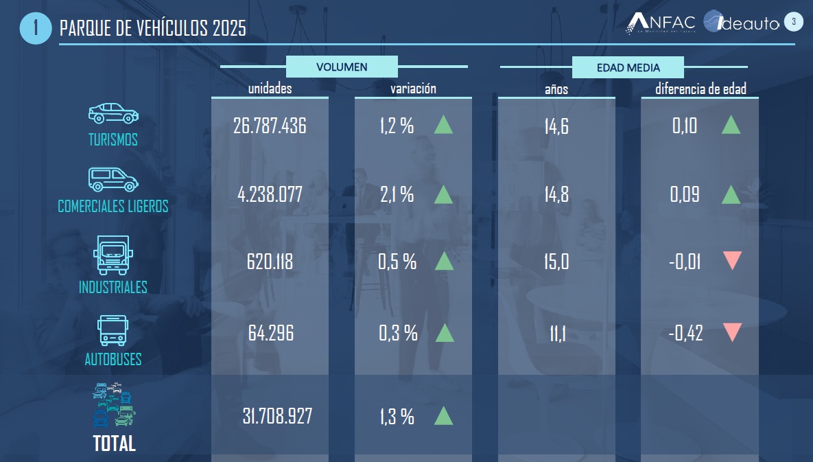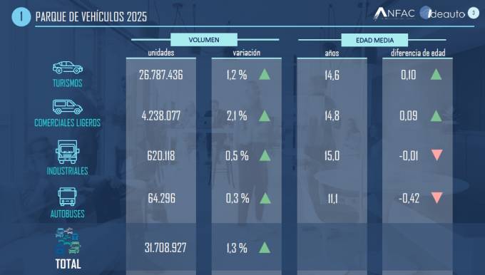 José López-Tafall, director general de Anfac, ha alertado sobre las implicaciones de estas cifras: "el parque de vehículos en España sigue envejeciendo y la media de antigüedad de los turismos ya alcanza los 14,6 años. A pesar del esfuerzo de las marcas por impulsar la electrificación, es preocupante que casi un tercio de nuestros vehículos superen los 20 años de antigüedad. Esto supone que durante el último año siguieron en circulación más de 9,2 millones de vehículos con más de 20 años, lo que es preocupante no solo por las emisiones, sino por la falta de sistemas de seguridad avanzada (ADAS) que son un beneficio tanto para conductores como ciudadanos y salvan vidas en las carreteras".
