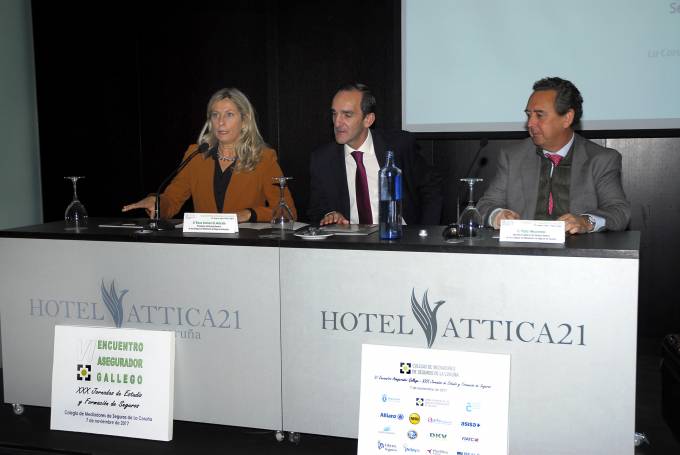 Javier Chueca, socio de Chueca Morales habló sobre los procedimientos claves para los mediadores en la tramitación de siniestros. Dimas Suárez Barros, vocal del Colegio La Coruña dio a conocer el proyecto de capacitación y activación de empleo 'Vivero de Candidatos'que ha puesto en marcha la insititución para la mejora de la formación, profesionalización e imagen del mediador profesional y del sector en general. Pablo Wesolowski, secretario general del Consejo General se refirió a banca seguros.