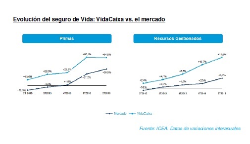 VidaCaixa cerró el primer semestre de 2016 con un beneficio neto consolidado de 241,9 millones de euros, un 66% más que en el mismo periodo del año pasado. Este incremento se debe principalmente al buen comportamiento de las carteras de ahorro y riesgo, especialmente del segmento individual, además de beneficios extraordinarios de la gestión activa de inversiones.