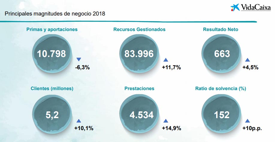 En cuanto a prestaciones la compañía pagó durante 2018 un total de 4.534 millones, un 15% más que un año antes. Las prestaciones en forma de renta sumaron más de 2.000 millones y la entidad es la empresa privada que paga más rentas en España, según apuntaron en la rueda de prensa.