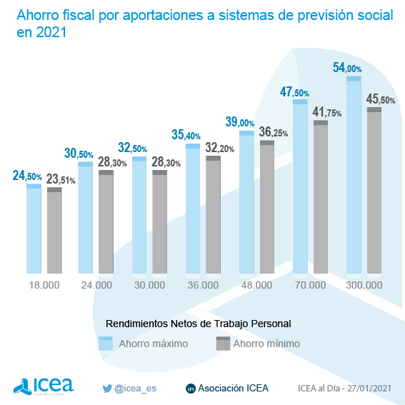 "Con ello, el ahorro fiscal va a depender de la tarifa que cada comunidad autónoma tenga establecida, produciéndose variaciones entre unas y otras como puede verse en el gráfico", indica ICEA.