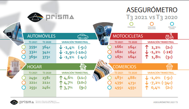 El nuevo informe Asegurómetro de Prisma sobre los precios en el canal de corredores constata que de los ramos analizados el de Hogar es el que experimenta un mayor crecimiento, mientras en Autos la prima media decrece. El análisis corresponde al tercer trimestre del año, sobre una muestra de 1.590.184 pólizas tanto de operaciones de nueva producción como de renovación de cartera en Automóviles, Motocicletas, Hogar y Comercios.