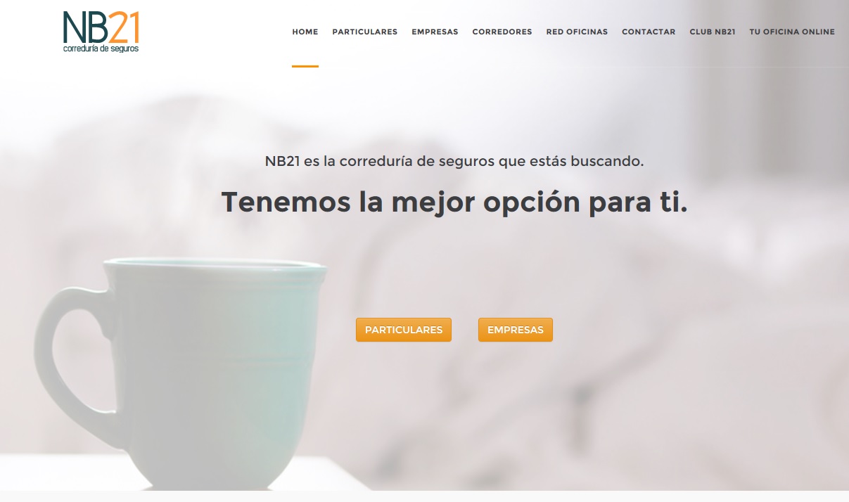 NB21 ha actualizado su página web para adaptarla a las nuevas tendencias de diseño y usabilidad: está dirigida a facilitar al usuario la navegación por el site, independientemente del dispositivo utilizado para acceder al mismo. Según la correduría, “el objetivo es transmitir los valores de la empresa a los usuarios de una forma ágil, generando emociones positivas y agradables a los mismos. Potenciar a su vez la consulta e interacción con la correduría, comunicando aquellas promociones, productos y contenidos más específicos y tratando de dejar lo más limpio posible este nuevo espacio corporativo”. La entidad también explica que en esta nueva web, adquieren especial relevancia los espacios habilitados para clientes (oficina on-line) y para otros corredores “que estén analizando opciones de colaboración con otras corredurías más grandes con el ánimo de mejorar su propia posición competitiva”.