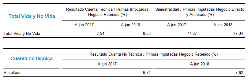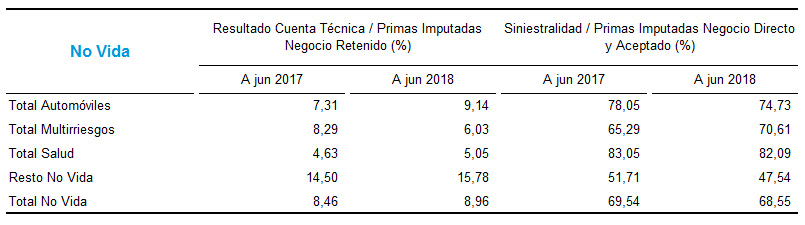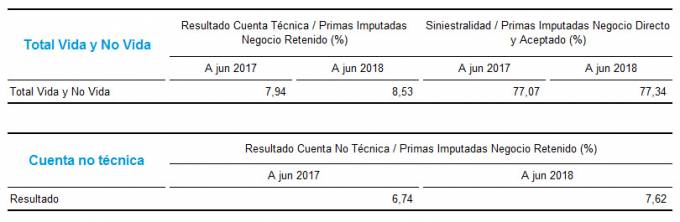 de 2017 en un 1,83 puntos porcentuales (pp) alcanzando un resultado técnico sobre primas imputadas del 9,14%. Además, según los datos de ICEA este negocio ha bajado su siniestralidad sobre primas del 78,05% de junio del pasado año hasta los 74,73% del final del primer semestre del año.
